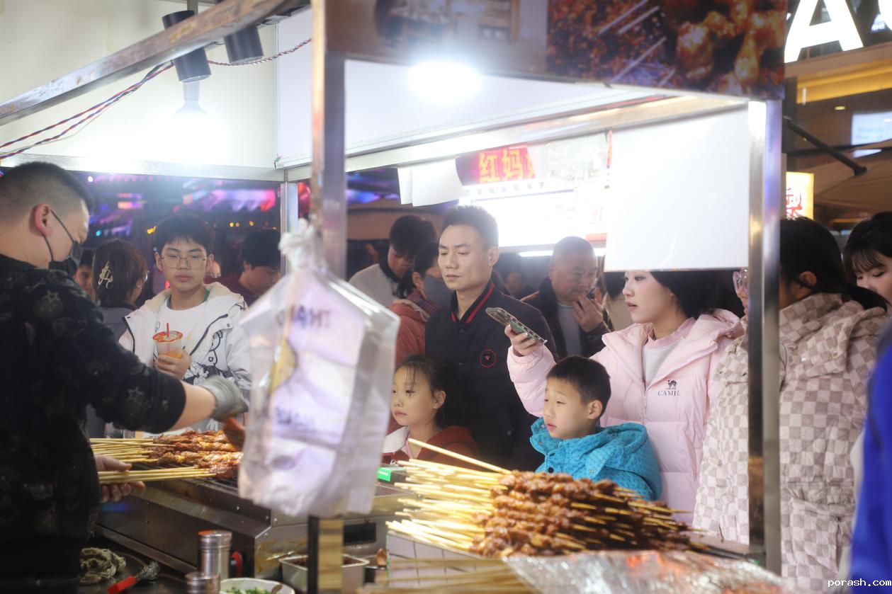 除了非遗文创展台,美食摊位前面也都围满了顾客,长沙臭豆腐、邵阳回民米粉、冰糖葫芦、韩式炸鸡......各种特色小吃让人齿颊留香,回味无穷。“跨年夜好热闹,氛围特别好!”市民沈先生下班后带着家人前来“凑热闹”,手中提满了各色小吃,“买了孩子爱吃的烤串和狼牙土豆,还买了一些非遗文创,我们一家子都玩得很开心。”沈先生笑着说。