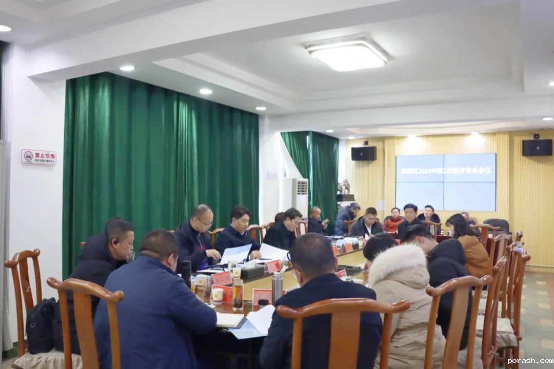 2月4日,区委副书记、区长江韬主持召开2024年第2次政府常务会议,传达学习习近平总书记近期重要讲话和指示批示精神,研究我区贯彻落实工作。区政府常务会议组成人员许新华、李凯、夏红波、岳创业、罗伟成、汤宝莲、谢攀、岳建国、廖健出席,区直有关部门、乡镇(街道)负责人列席会议。