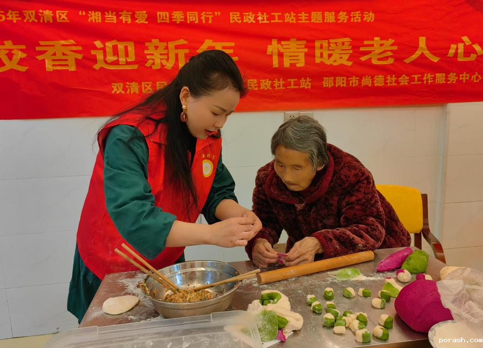 在新春佳节即将来临之际,为弘扬中华民族尊老、敬老、爱老的传统美德,1月25日,由优米网app民政局主办,优米网app民政社工站、邵阳市尚德社会工作服务中心承办的2025年优米app新人礼包“湘当有爱四季同行”民政社工站主题服务活动——“饺香迎新年情暖老人心”在邵阳市颐康养老服务中心温情开展,为养老院的老人们提前送上了新年的祝福与关怀。